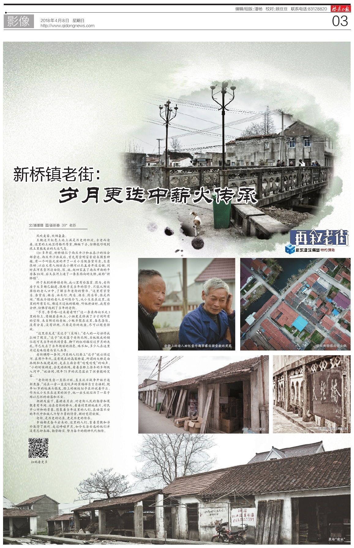 终于来到新桥镇老街,我心里有些落寞。因为,老街房子大多都已翻建,很难寻觅当年的影子。只能从附近居住的老人口中,了解当年老街的繁华。“这里有京货店、杂货店、粮店、油米行、肉店、酒店、药店等,很是热闹。”跟我介绍的老人名叫陈介飞,从小生长在这里,这里的所有变化,都逃不过他的眼睛。听他讲话时,我有些分神,仿佛穿越到了当年的老街。