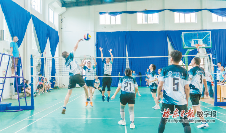 在启东市排球协会主办的2025年“我要上全运”系列活动”水建杯“第三届俱乐部气排球联赛上,9支俱乐部代表队,120名运动员以球会友,倡导全民健身。