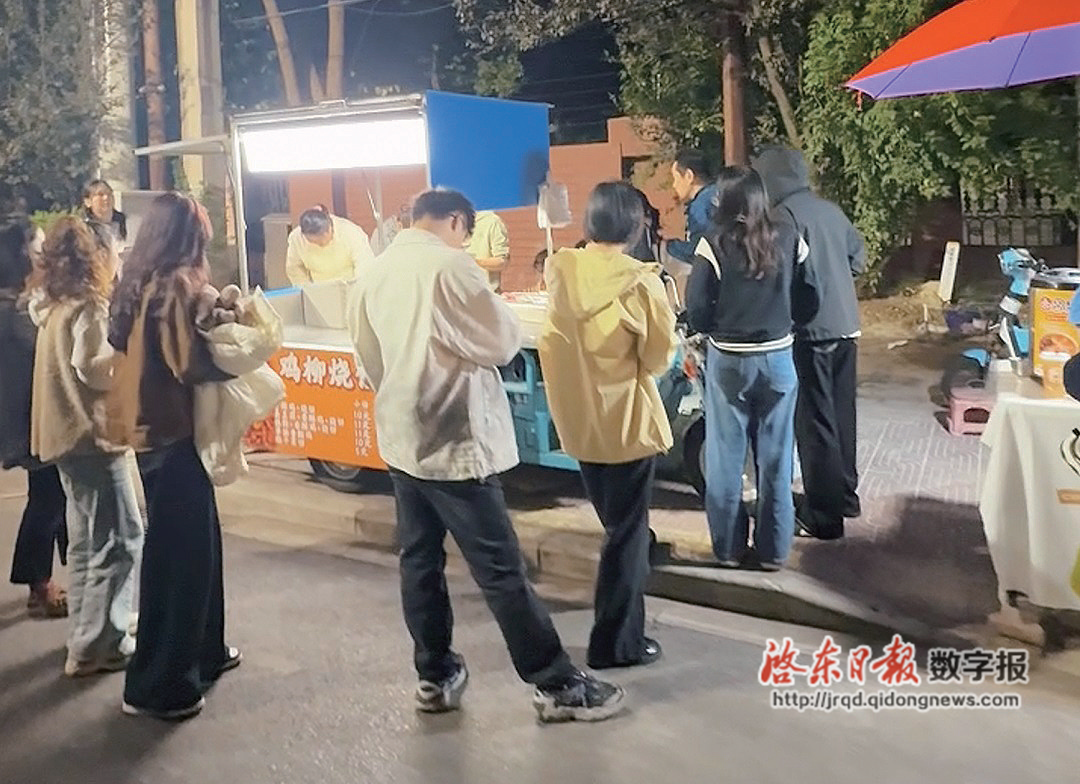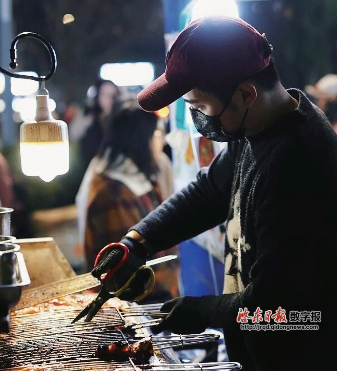 “每天要卖出上百个鸡架、40多份锅包肉。”90后姑娘龚丹丹坦言,每天忙到半夜,回家之后不能立刻休息,需要赶紧腌制鸡架,很累。“来到启东一年多了,这座城市很温暖,充满人情味,就是冬天有点冷。”00后小伙王昶略显腼腆,说罢又低头翻转烤盘。